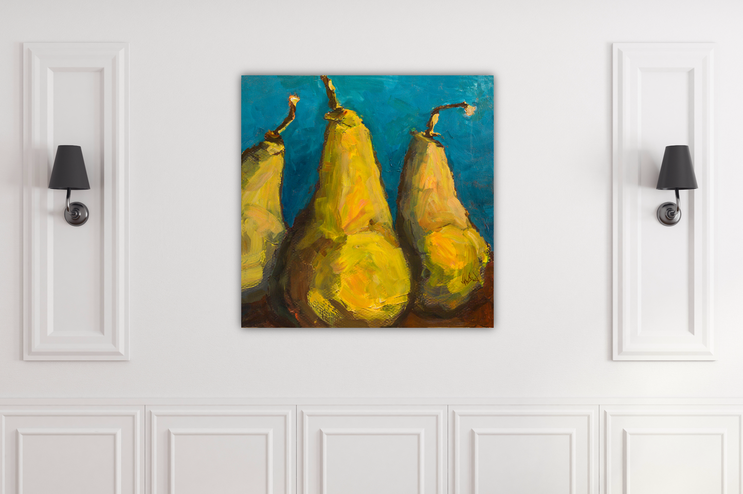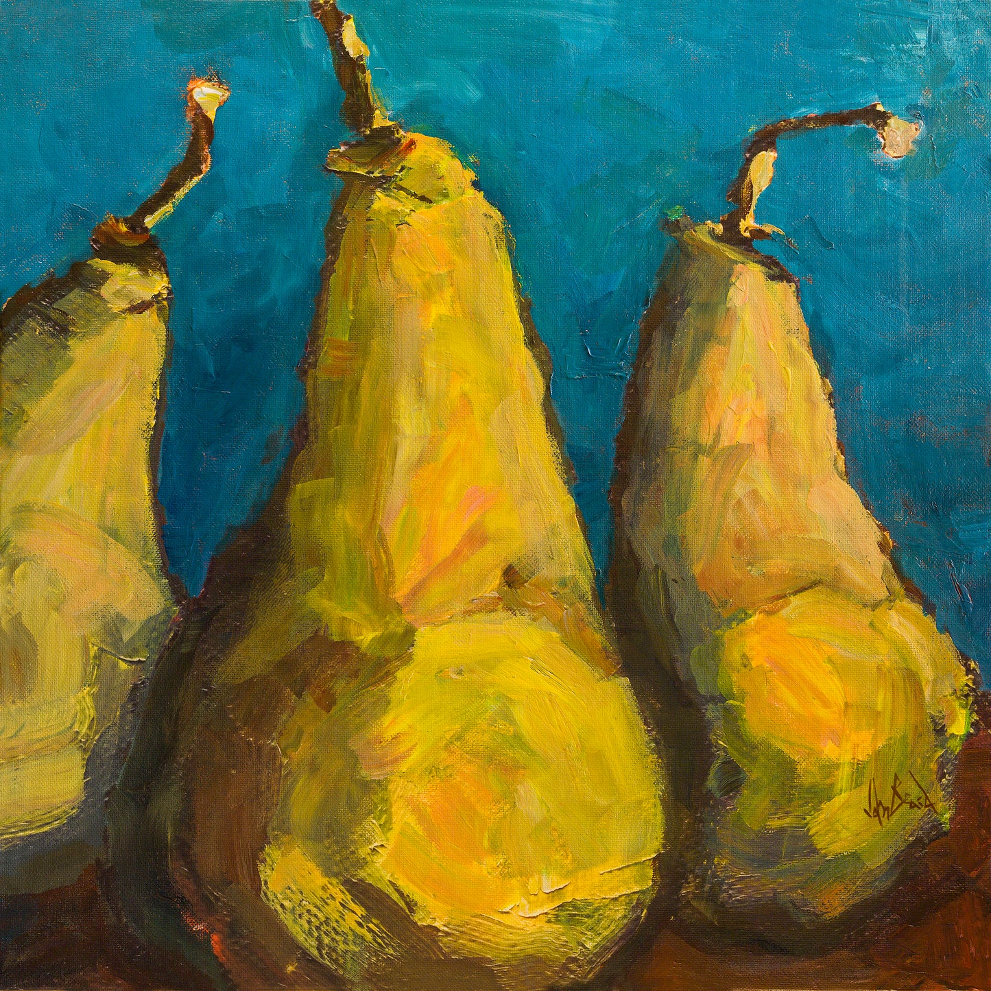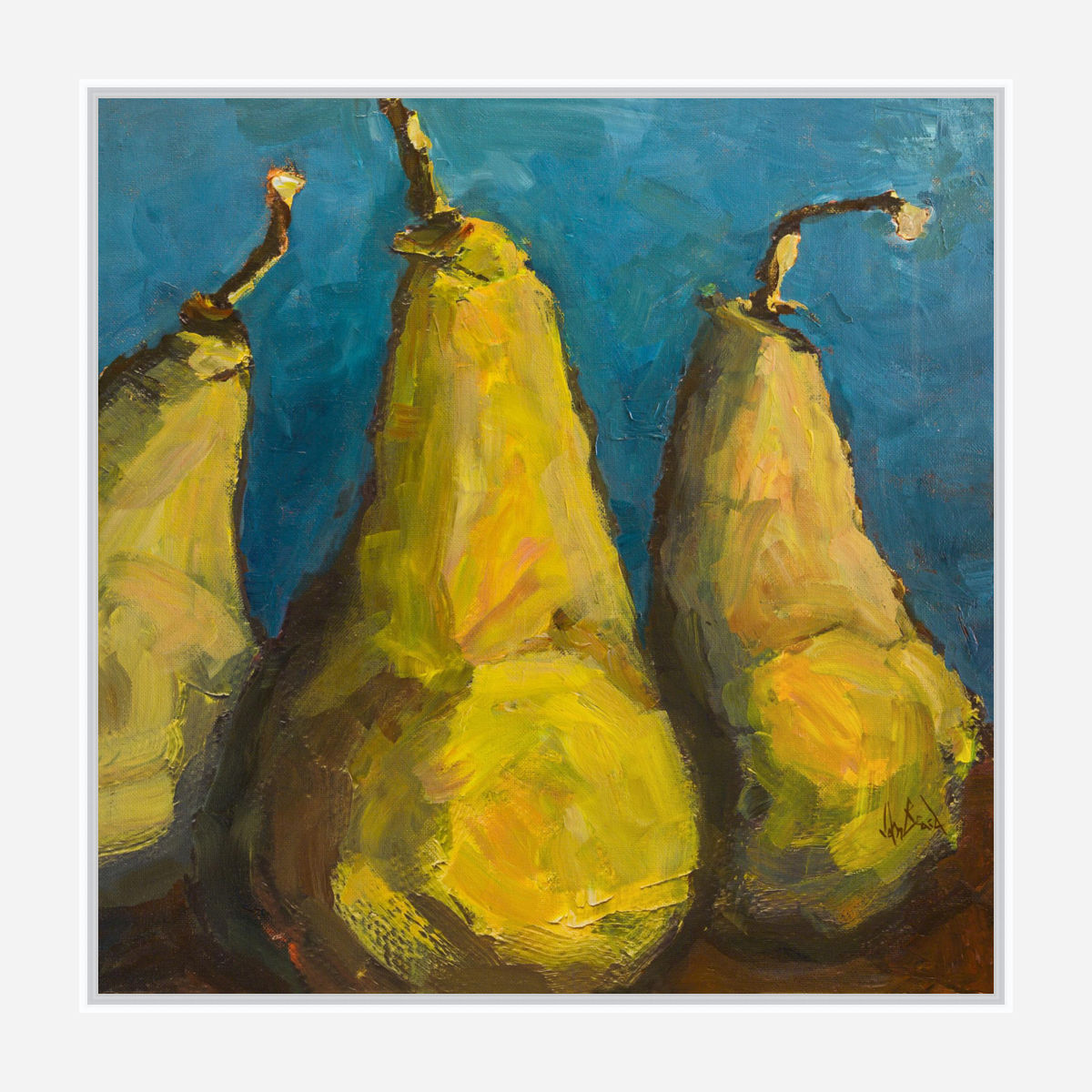 Pears with Teal Artist Enhanced Canvas Print