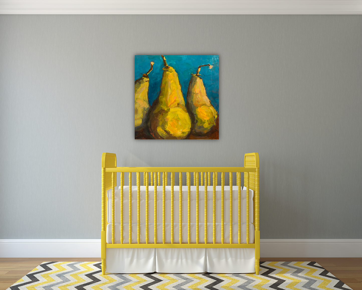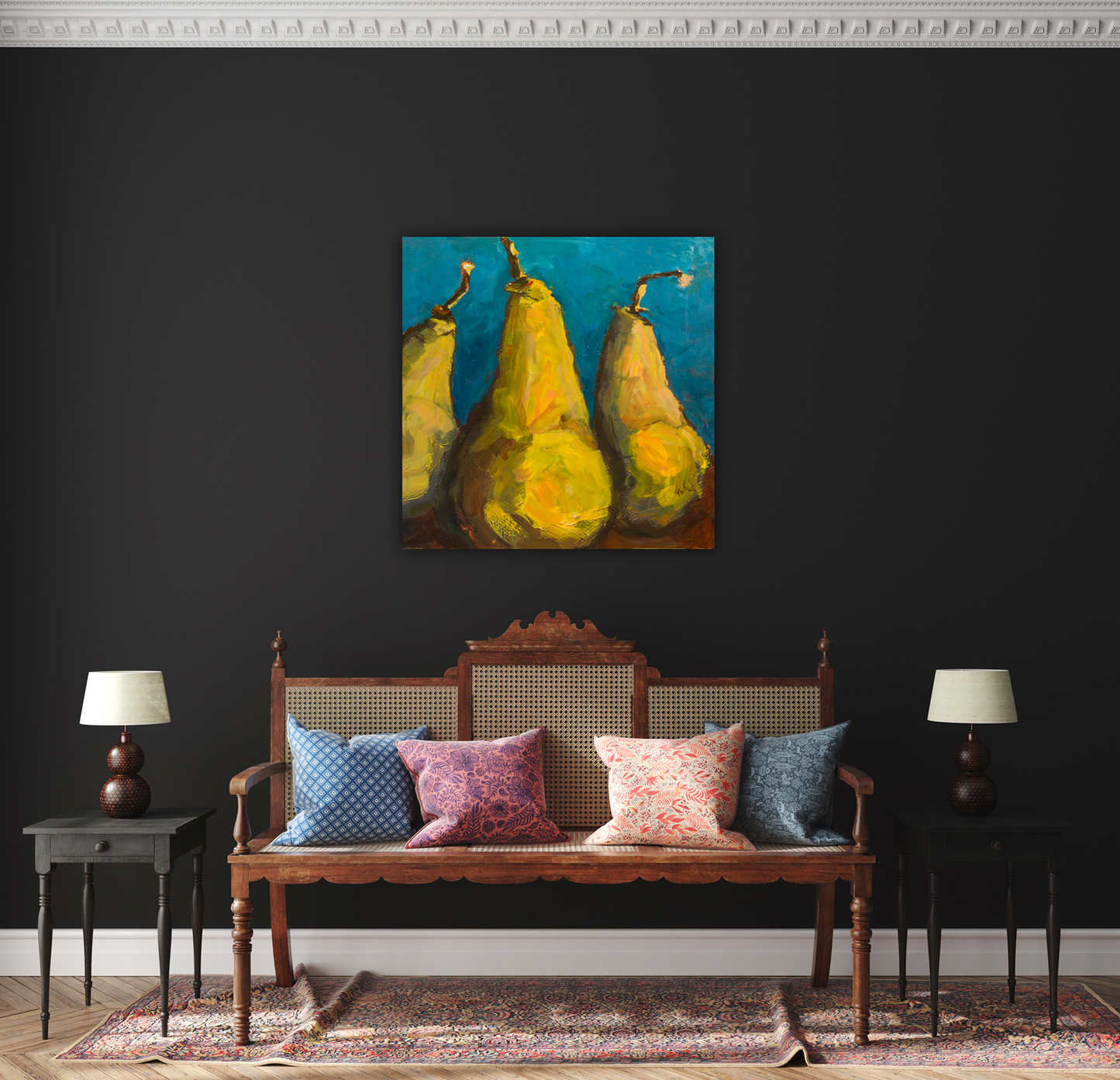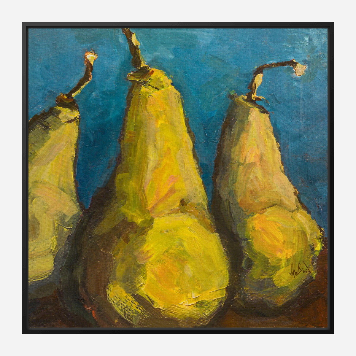 Pears with Teal Artist Enhanced Canvas Print